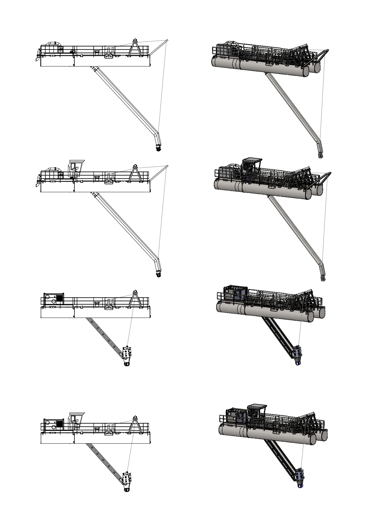 To mała uproszczona wersja modułowego zestawu, z którego możemy konfigurować małe pogłębiarki ssąco refulujące o różnej funkcjonalności. Pogłębiarki te wykorzystują pompy SDP150 (do 450m3/h) lub SDP200 (do 800m3/h) z napędem elektrycznym lub napędem olejowym. Mogą być konfigurowane do różnych głębokości kopania.