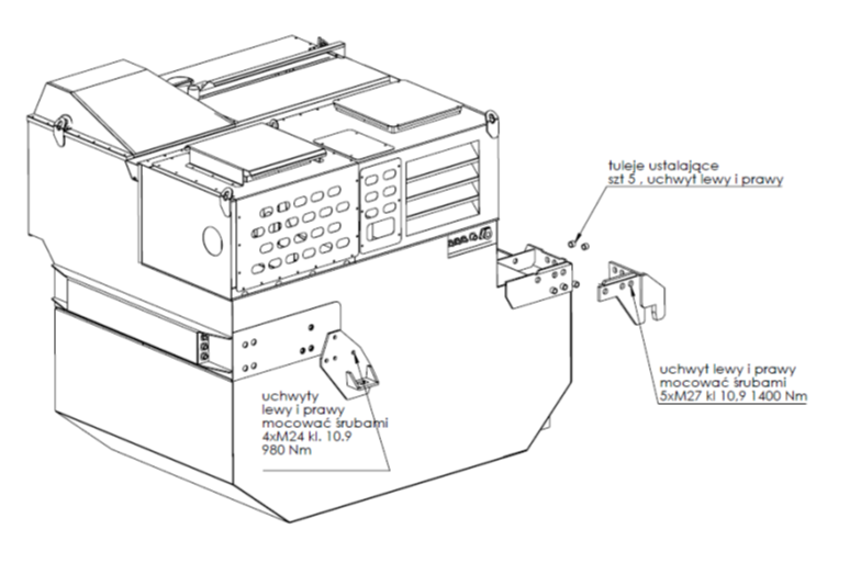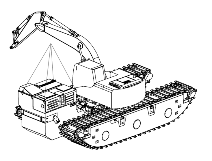 • umieszczenie agregatu w szczelnej – wypornej obudowie zanurzonego częściowo w wodzie zmniejsza hałas emitowany do otoczenia, daje dodatkową wyporność i zmniejsza nacisk gąsienic na podłoże,