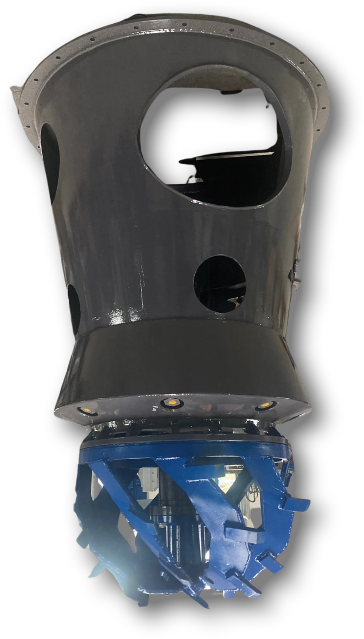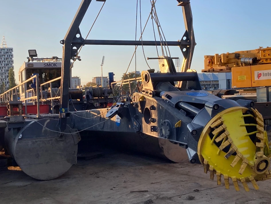 Firma nasza produkuje także głowice frezujące o większych mocach, dopuszczonych do stosowania w pogłębiarkach frezujących lub w pogłębiarkach naszej produkcji Typu EE.
