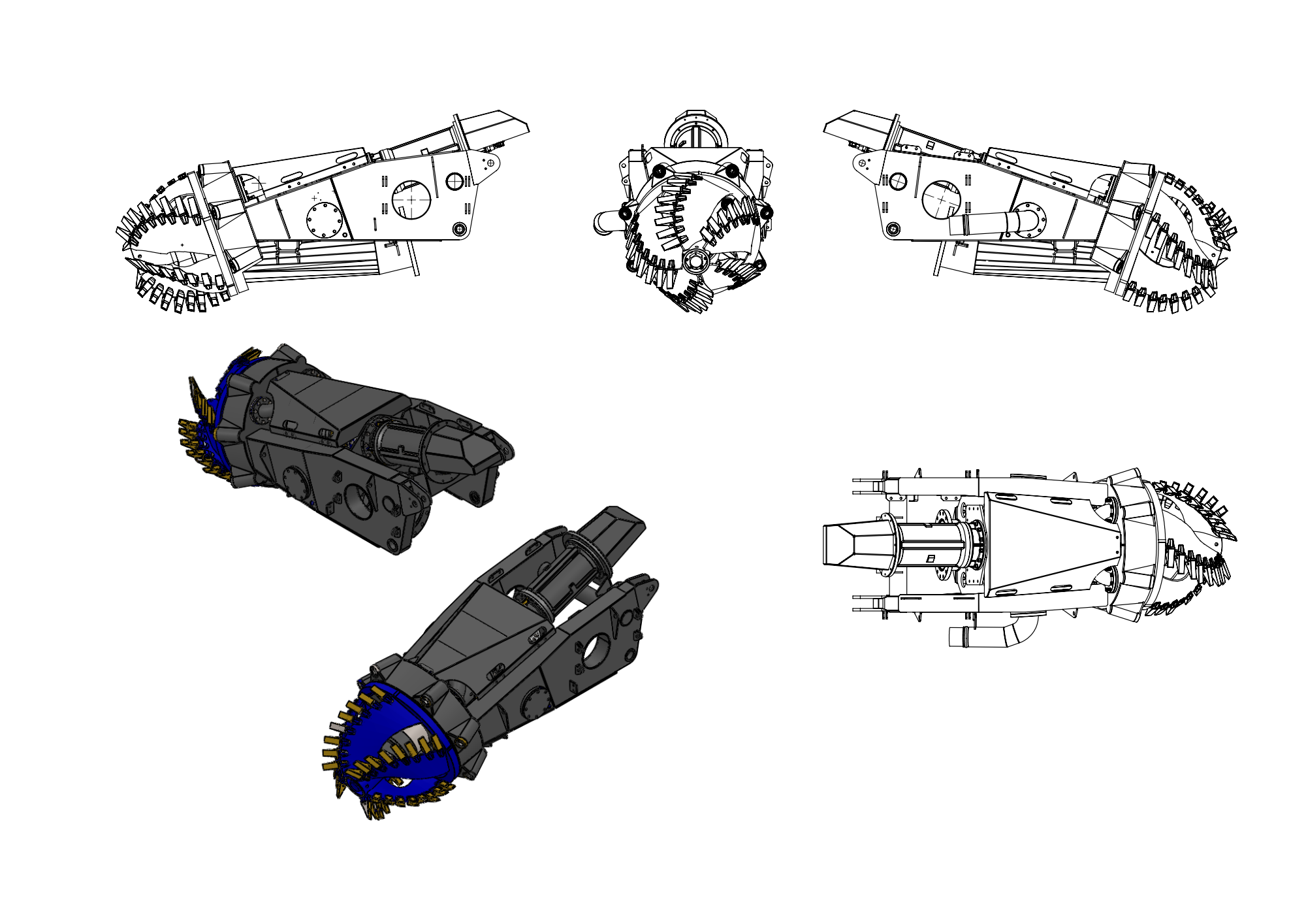 Głowice tego typu to rozwiązanie bardzo przydatne w realiach występujących w większości kopalń piasku i żwiru w Polsce. Na terenie Polski bardzo rzadko występują kopalnie w których złoże jest jednorodne i łatwo urabialne. Najczęściej kopalnie borykają się z przerostami gliny iłu lub warstw zbitego żwiru. Głowice nasze pomagają przebijać się przez tego typu przeszkody i przez to zwiększyć wydobycie zmniejszyć koszty oraz pozwalają ustabilizować wydobycie na równym poziomie.