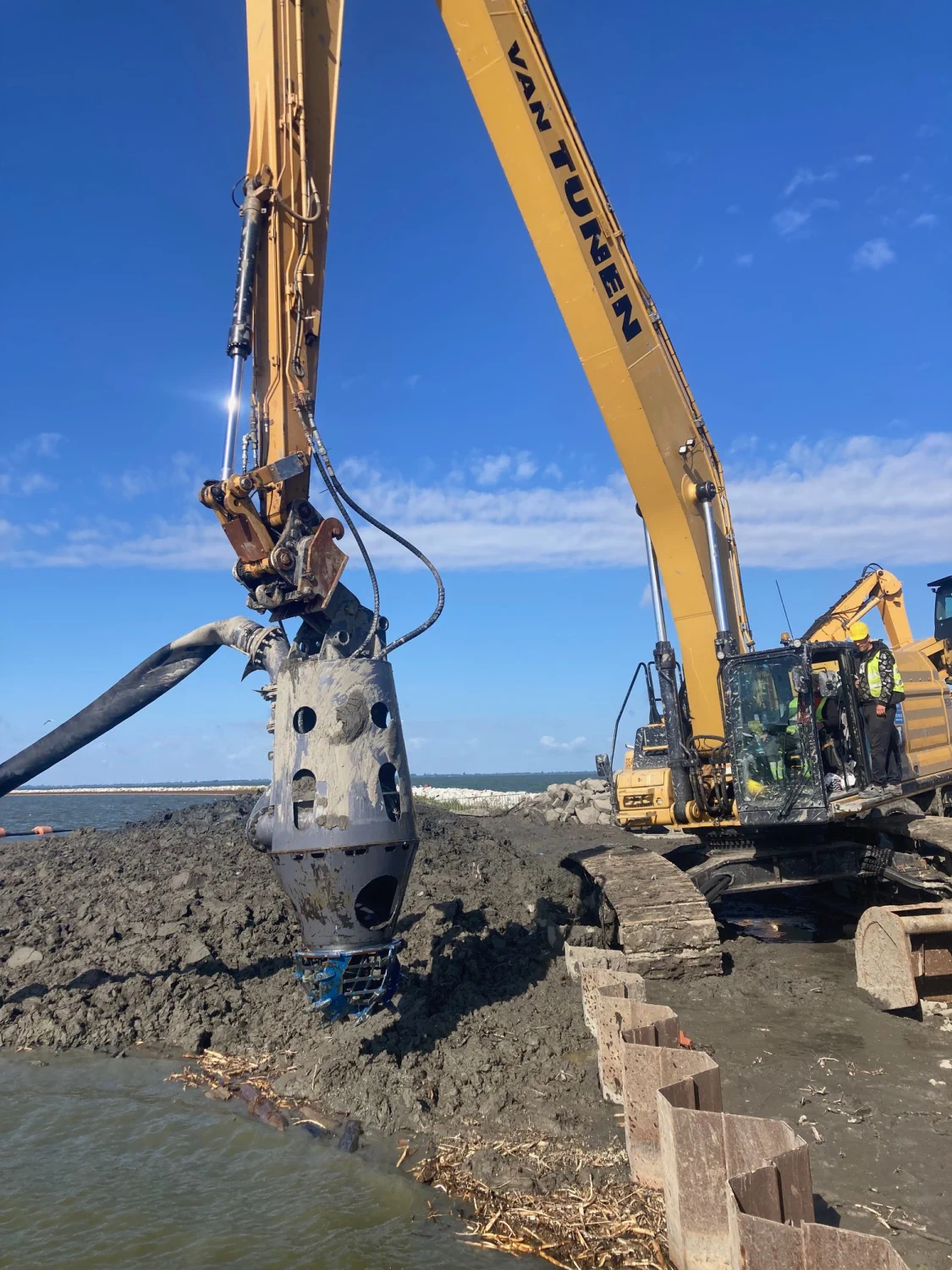 Koparka brodząca może być używana do prac pogłębiarskich metodą mechaniczną lub do przeprowadzania badań gruntu na terenach podmokłych / bagiennych oraz bardzo płytkich zbiornikach wodnych. Do tego rodzaju prac używamy dwóch pierwszych komponentów koparki (bez agregatu hydraulicznego).