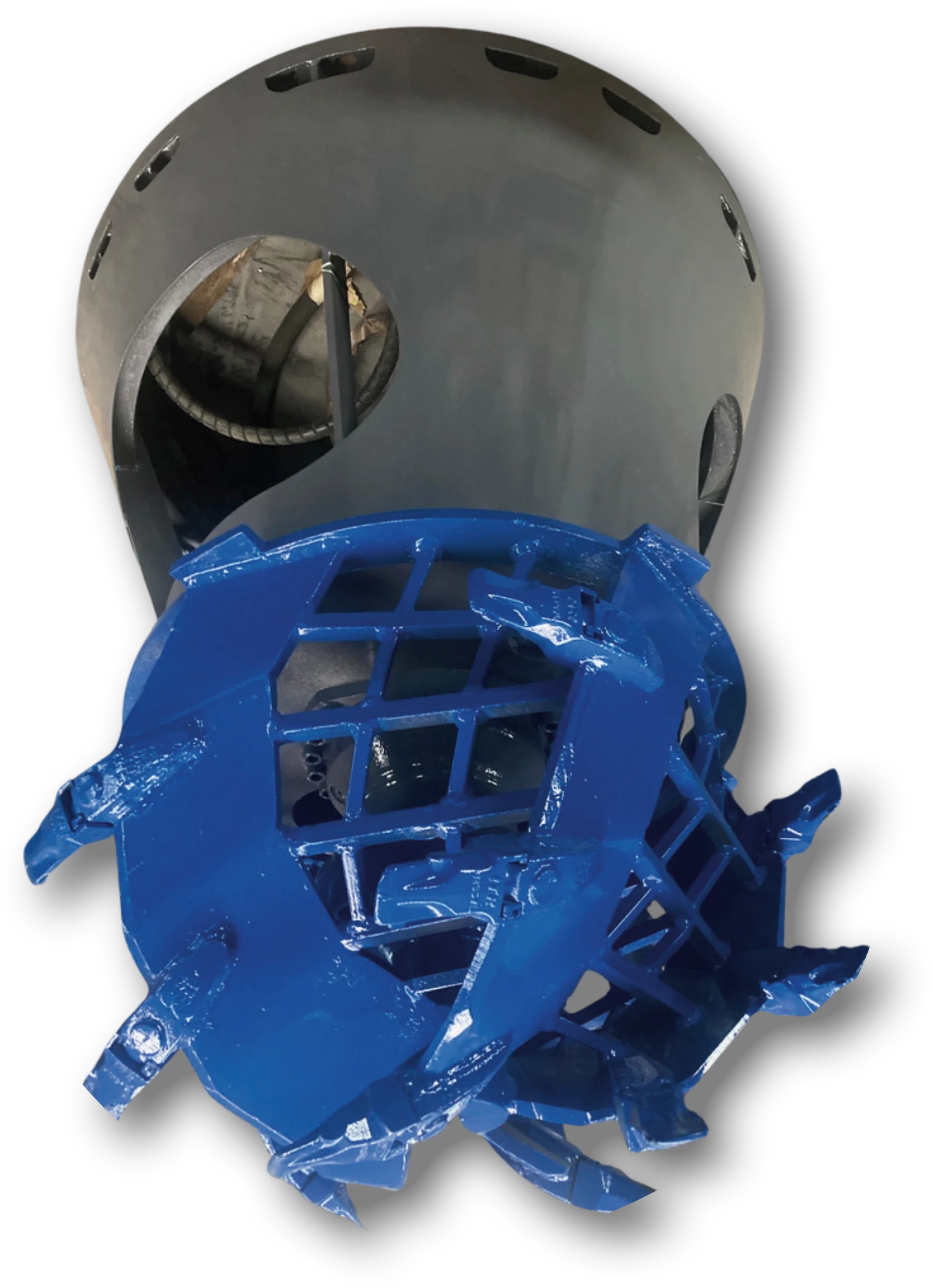 Są to głowice wyposażone w dysze jet i obrotowy kosz frezujący z napędem elektrycznym (elektrycznym silnikiem zanurzeniowym).